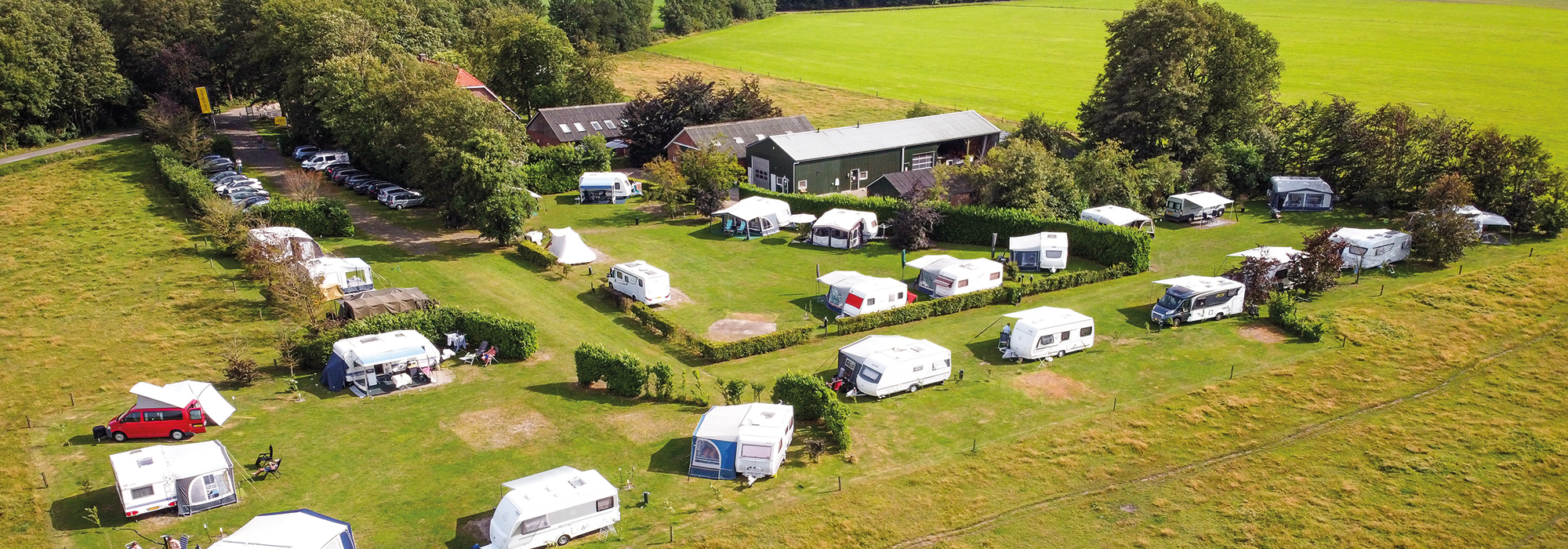 De sfeer die Natasja omschrijft komen we tegen als we een rondje over de camping maken. Inderdaad lijken de caravans vrij over de camping verspreid te staan. Zo heeft iedere kampeerder een afgezonderd plekje en is er toch makkelijk contact met elkaar te maken. Gasten bevestigen dat ze een keer van Natasja een bos bloemen thuisgestuurd hebben gekregen en een gast vertelt hoe gezellig ze het gisteren met de andere campinggasten hebben gehad. Ze vertellen ook dat ze de camping ooit hadden uitgekozen vanwege de ligging tussen natuurgebieden. Ze waarderen de camping ook vanwege het comfort. Alle staplaatsen voor caravans en campers zijn verhard met graskeien. Auto’s staan op de parkeerplaats voor de camping. De camping is niet ingericht voor kinderen, maar ze zijn wel welkom. Honden zijn toegestaan, maar moeten zijn aangelijnd. Henk Jan laat ons graag zien dat ze in 2013 de voormalige varkensschuur hebben omgebouwd tot vier boerderijkamers, zoals hij ze noemt.