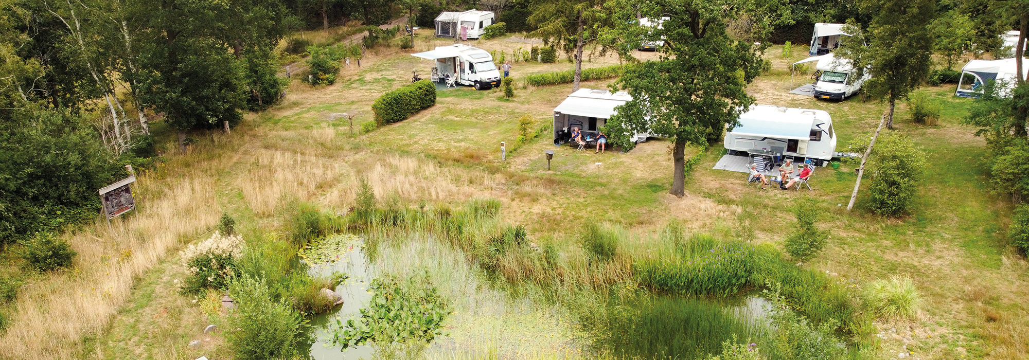 Van bovenaf zie je pas goed hoe vrij de camping gelegen is.