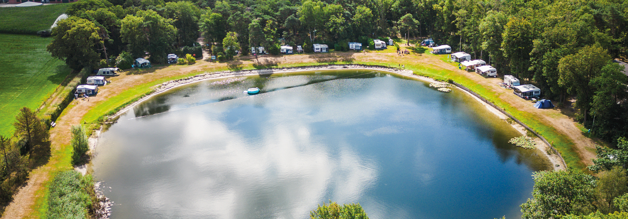 Rond de vijver of in het bos bij Camping De Vrolijk.