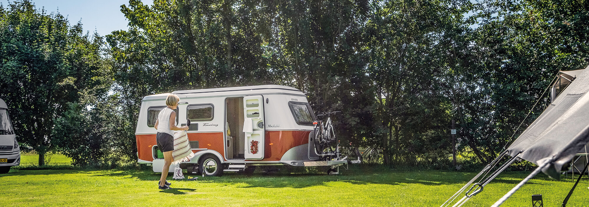 Op het buitenste veld Veldzicht zitten Leun en Hennie Berns uit Zeist voor hun caravan van het uitzicht te genieten en meteen plannen te maken waar ze hun fietsen vandaag naartoe trappen. Na jaren te hebben gevaren en in het buitenland te hebben gekampeerd kiezen ze sinds 2017 vaker voor de kleinschalige campings in Nederland. Leun: “We gaan al langer zonder kinderen kamperen. Met animatie doen wij niet meer mee. Geef ons maar de rust van een camping zonder kinderen.” Hennie: “We hebben dit gebied nog maar kort ontdekt. Het is 40 kilometer van Zeist, maar we zitten in een heel andere wereld. Het is een prachtige omgeving waar veel te doen is. We blijven hier gelukkig wat langer, want je hebt aan twee dagen echt niet genoeg.” Leun: “De camping is uitstekend. Het sanitair is schoon en je kunt lekker douchen. Het hoeft niet luxe te zijn. De eigenaren zijn ontzettend gastvrij. Bij ontvangst werden we naar onze plek gebracht en iedere ochtend krijg je het verse brood bij de caravan. Dat is toch genieten. Ik denk dat we hier nog vaker komen.”